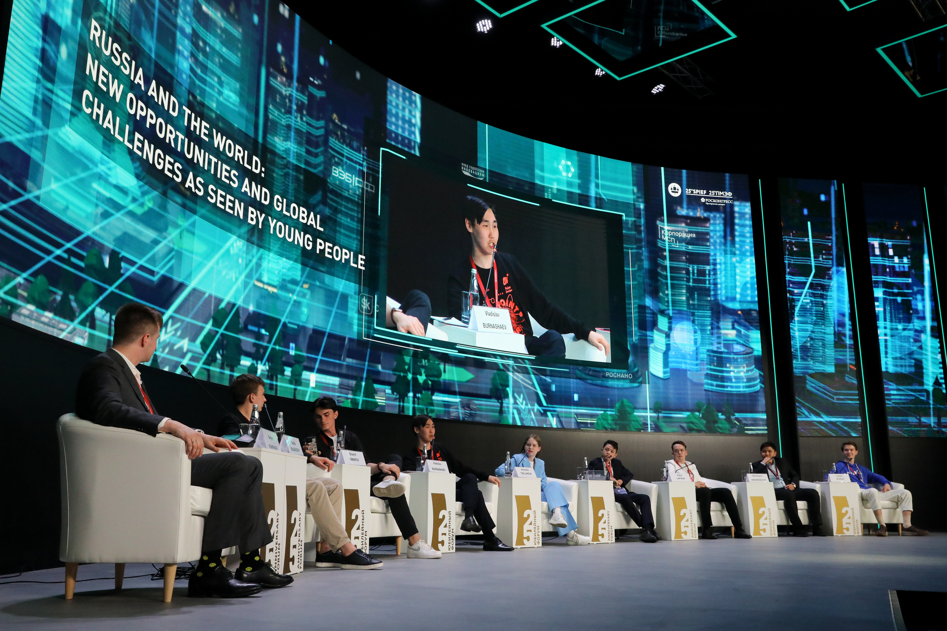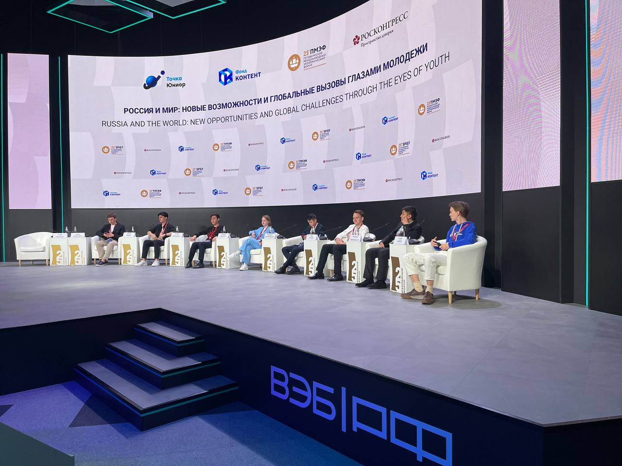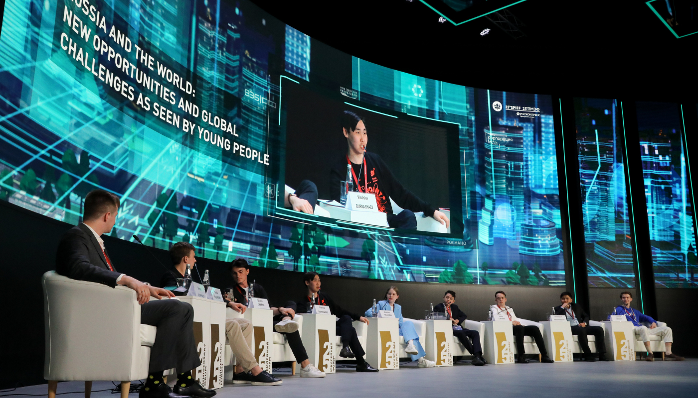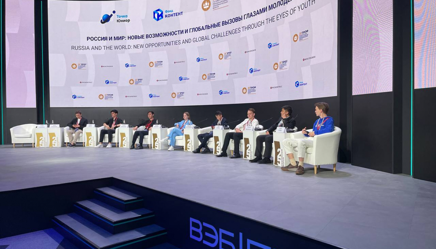 Центральным событием «ПМЭФ.Юниор» стала пленарная сессия «Россия и мир: новые возможности и глобальные вызовы глазами молодежи». Подростки из разных регионов обсудили ожидания от будущего, поделились своими планами и жизненными целями и еще раз доказали, что молодое поколение способно гораздо эффективнее справляться с возникающими проблемами. Участие в сессии приняли: Омаров Шамиль, Бугаевский Данила, Целунова Вероника (г.Нижний Новгород), Лапшин Виктор, Леонов Лукьян, Бурнашев Владислав, Суратходжаев Аббосхужа и Абдурасулов Хумоюн.