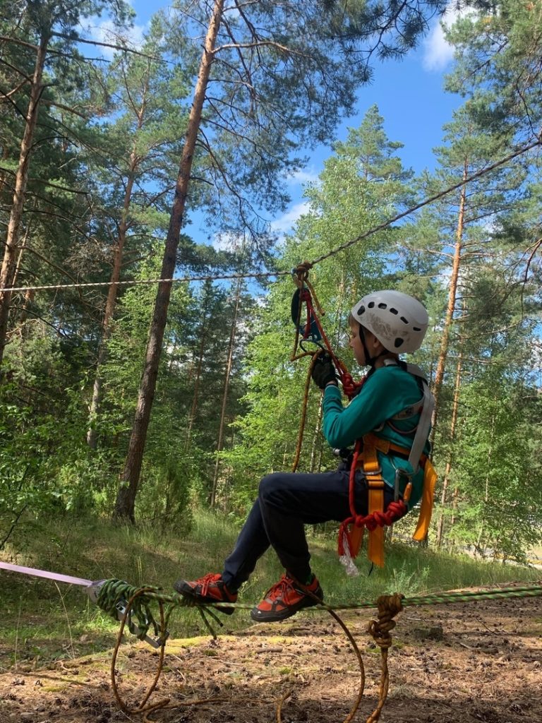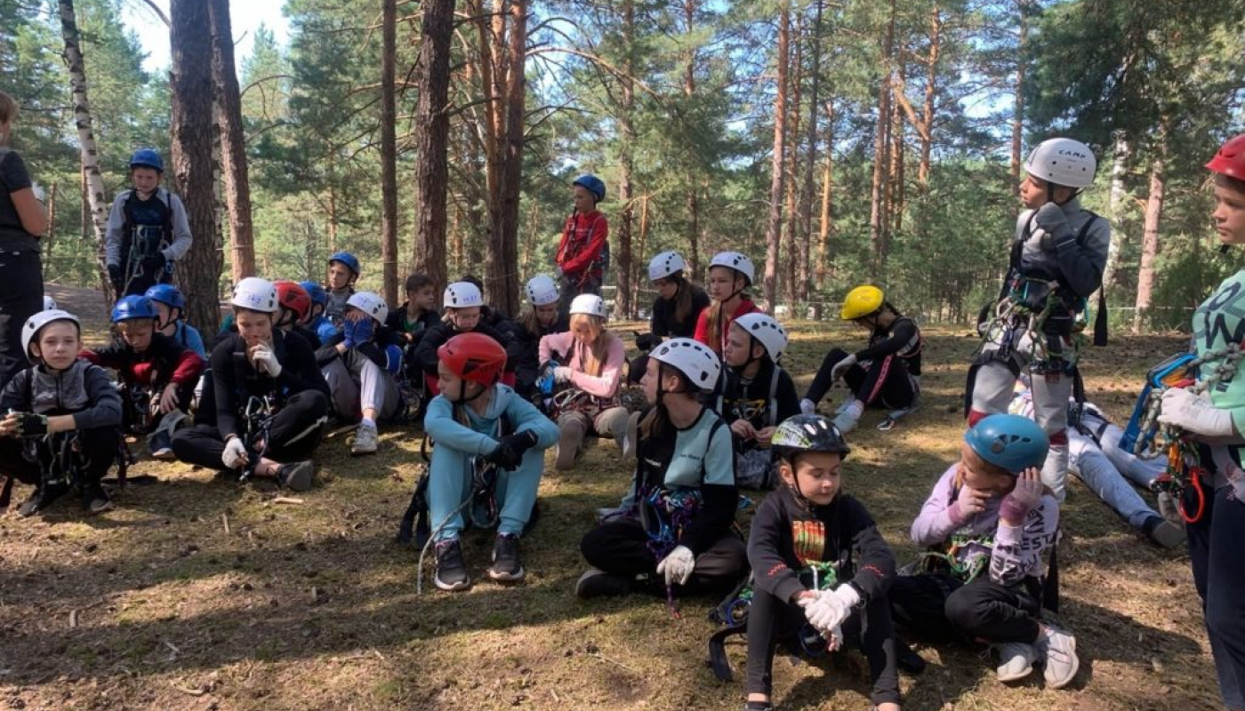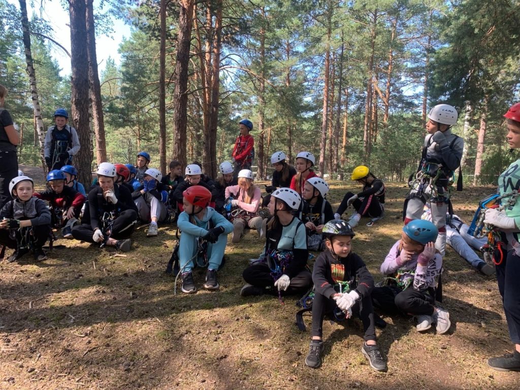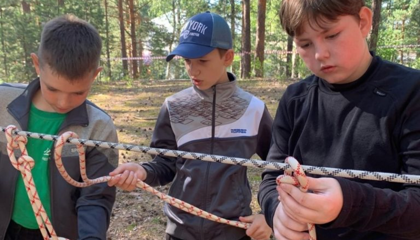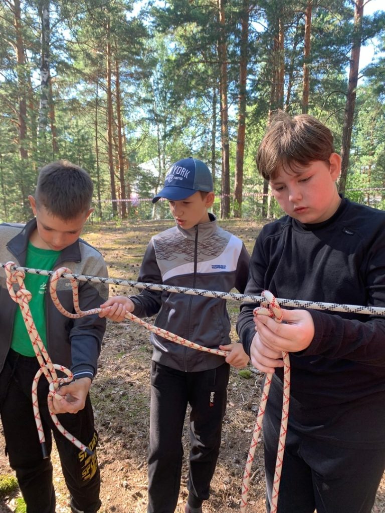 Ребята проходит различные этапы по спортивному туризму, вяжут узлы и выполняют задания по ориентированию.