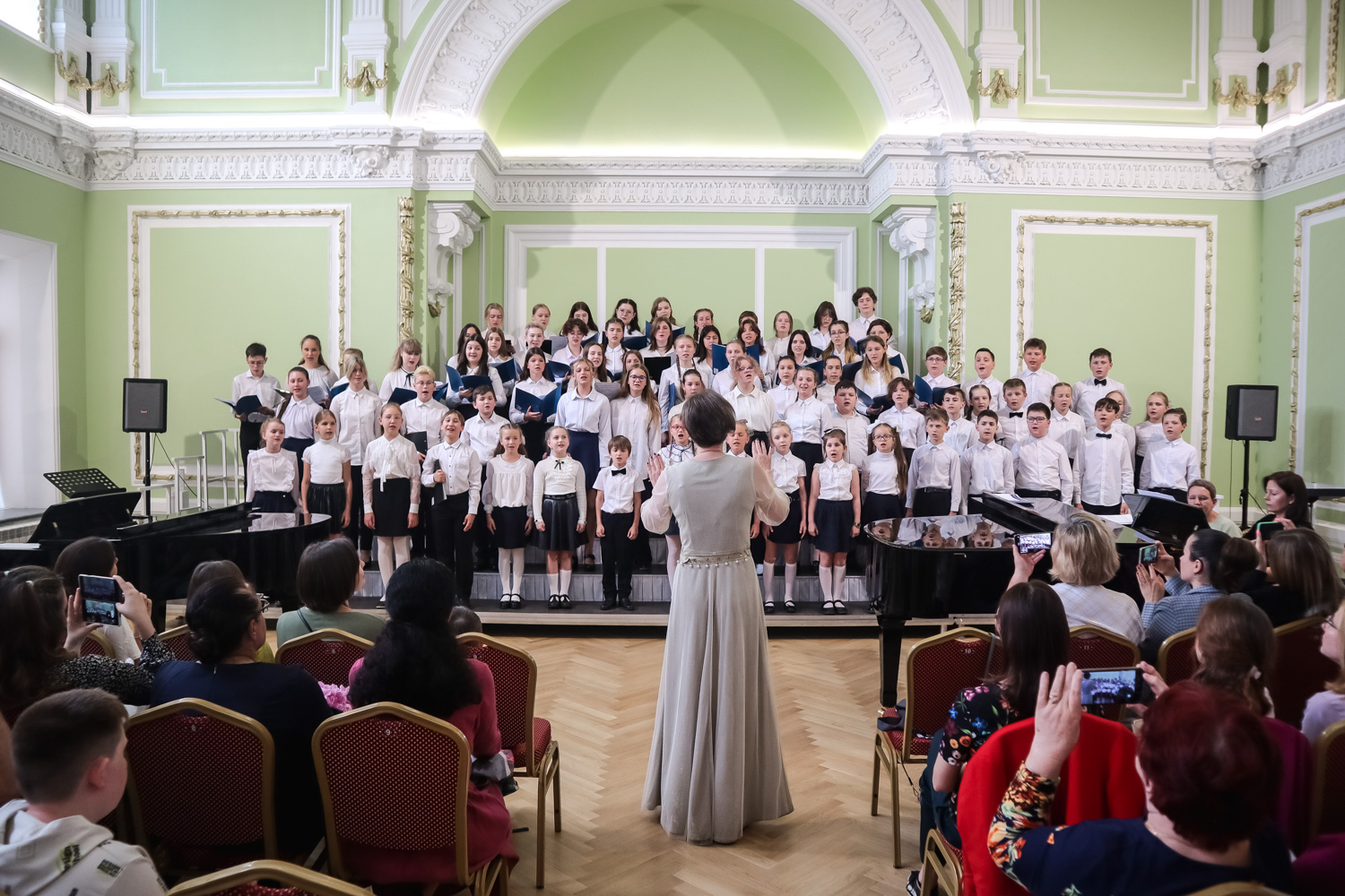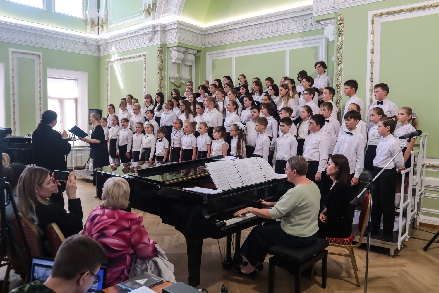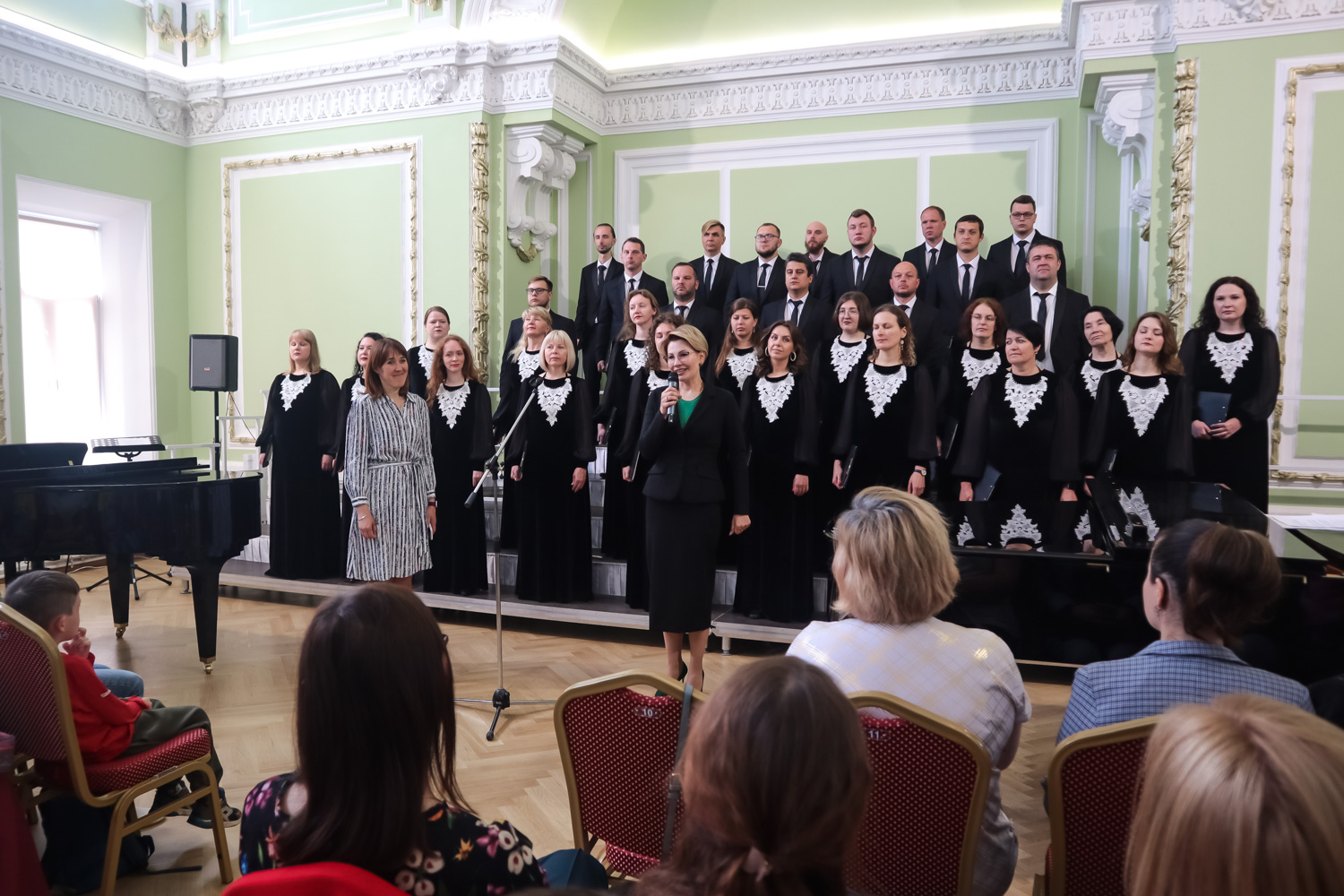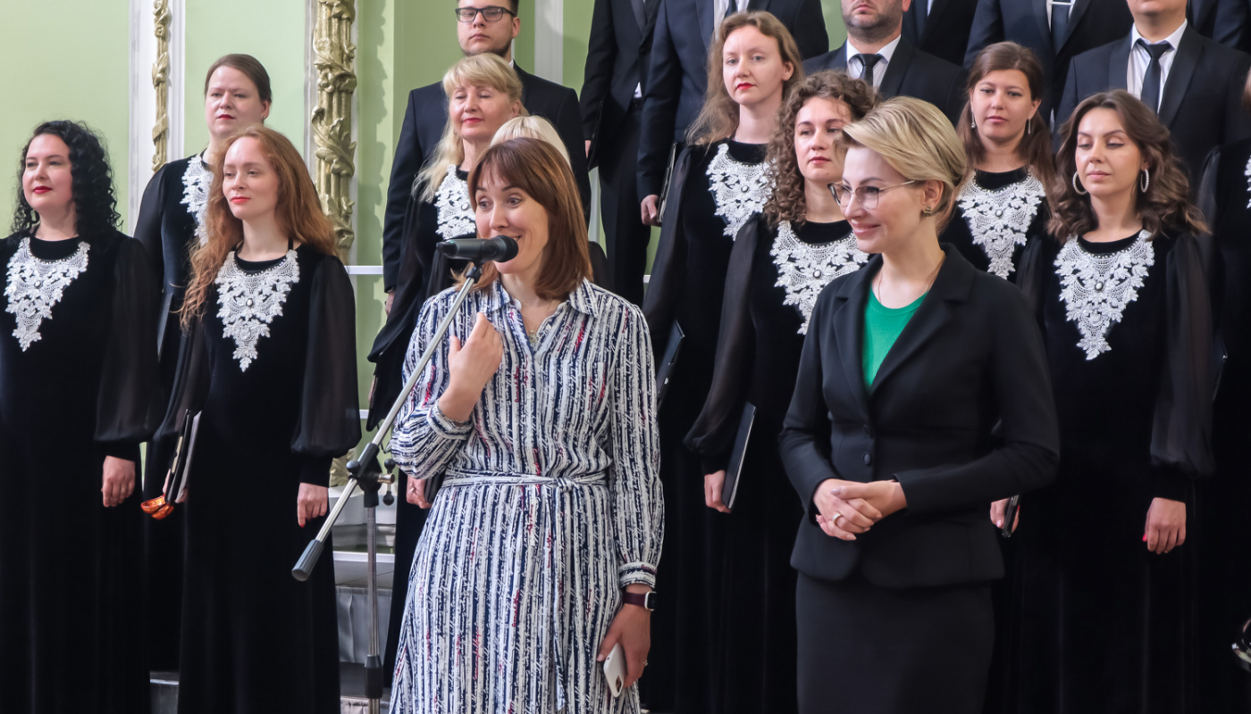 Перед ребятами выступил Камерный хор «Нижний Новгород» с его руководителем и главным дирижёром Иваном Стольниковым, а затем ребята разделились на группы и под руководством опытных педагогов Ларисы Яруцкой из Санкт-Петербургского университета культуры и Инессы Грицай из Алтайского музыкального колледжа показали, чему успели научиться за время интенсива.